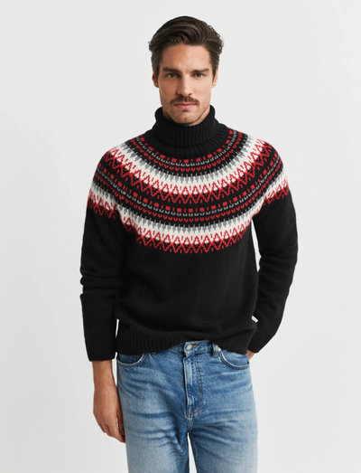 Dieser Rollkragenpullover mit klassischem Fair-Isle-Muster bietet sowohl Wärme als auch Stil. Die Rippbündchen sorgen für eine bequeme Passform und machen ihn zu einer idealen Wahl für kühlere Tage. Er ist pflegeleicht und kann per Hand gewaschen werden, um seine Qualität zu erhalten.