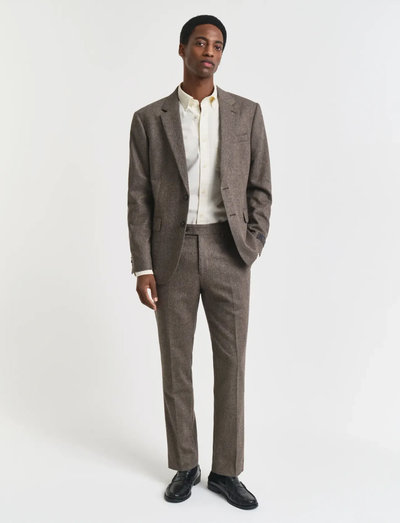 Diese schmal geschnittenen Hosen sorgen für eine schlanke Silhouette und interpretieren ein klassisches Design auf moderne Weise. Sie verfügen über eine mittelhohe Taille, einen sicheren Hosenschlitz mit Reißverschluss und Knopfverschluss sowie praktische Paspeltaschen hinten. Scharfe Bügelfalten sorgen für ein raffiniertes Finish.