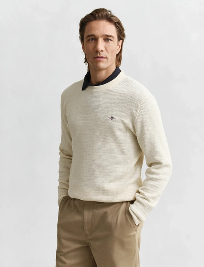 Dieser Pullover mit Rundhalsausschnitt zeichnet sich durch eine feine Mini-Zopfmusterstruktur aus und ist eine vielseitige Ergänzung für jede Garderobe. Die aufgestickte Grafik auf der Brust verleiht diesem klassischen Kleidungsstück einen Hauch von dezentem Branding. Perfekt zum Layern oder solo tragen.
