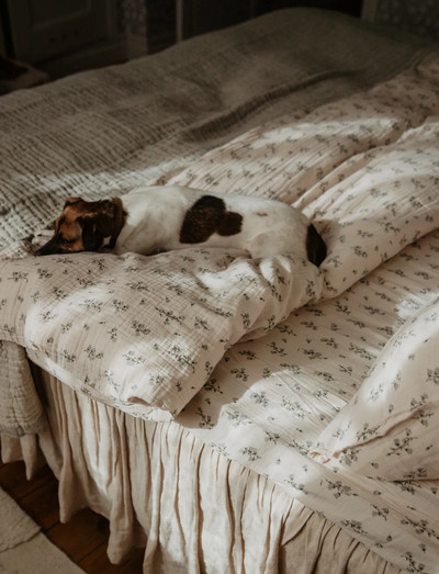 Våra sängkläder är kärnan i det som gör Garbo&Friends, designade för de sötaste av drömmar och prydda med våra signaturmönster. Dra-på-lakanet är tillverkat av lätt och luftig bomullsmuslin, ett himmelsmjukt material med vacker struktur som blir mjukare och mjukare för varje tvätt. Den elastiska fållen gör det lätt att ta på och av, samt håller lakanet på plats under användning.