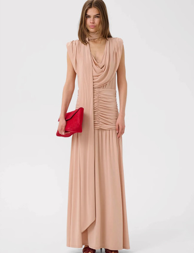 Dieses Maxikleid mit drapiertem Ausschnitt und Bindedetail bietet eine elegante Silhouette. Das Design zeichnet sich durch dezente Raffungen in der Taille aus, die die vorteilhafte Passform und den fließenden Rock betonen.