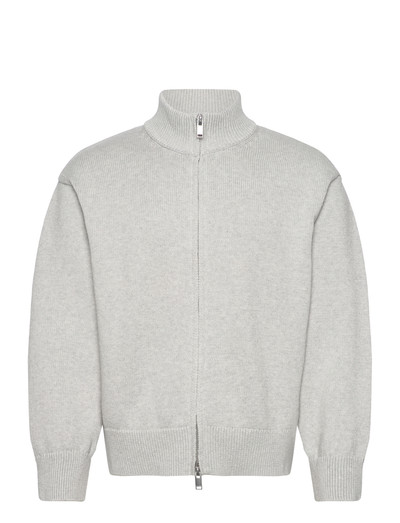 Diese Strickjacke mit durchgehendem Reißverschluss ist aus hochwertigem Jersey gefertigt und bietet sowohl Komfort als auch Stil. Das Design zeichnet sich durch einen hohen Kragen und eine elegante, stromlinienförmige Silhouette aus, was sie zu einer vielseitigen Ergänzung für jede Garderobe macht.
