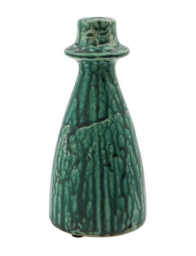 Enhance your decor with this unique, handmade terracotta candle holder. Featuring a deep green reactive glaze that mimics verdigris copper, its striking appearance adds an artistic touch to any setting. Each piece varies in finish, color, and size, embodying the true essence of handcrafted art. - Handcrafted terracotta elegance - Verdigris copper-like glaze - Each piece uniquely textured - Suitable for taper candles Bring artisanal charm into your space with this exquisite item.