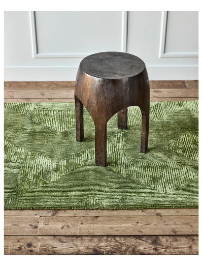 This green rug brings elegance and a soft, exclusive feel to your interior. The handwoven, monochrome surface catches the light, and a subtle graphic pattern adds sophistication and visual depth. Style it in the living room, hallway, or bedroom for a lush accent that feels inviting.