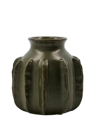 This dark green, handmade vase brings sculptural beauty and a personal, artistic touch to your living space. Its organic shape, inspired by nature, creates a striking focal point on the dining table, a shelf, or in the hallway.