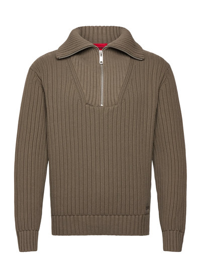Rippstrick bietet sowohl Textur als auch Wärme in diesem Pullover mit halbem Reißverschluss. Der Stehkragen sorgt für einen Hauch von Eleganz, während der Reißverschluss eine regulierbare Belüftung ermöglicht.