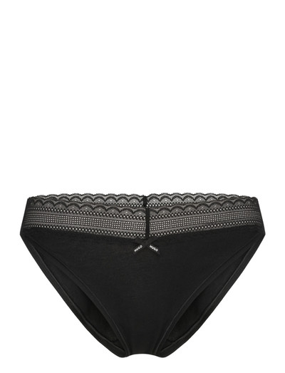 Zarte Spitzendetails verleihen diesem Slip einen Hauch von Eleganz. Der Bund ist mit einer transparenten Spitzenborte versehen, die durch eine Marken-Schleife in der vorderen Mitte ergänzt wird.