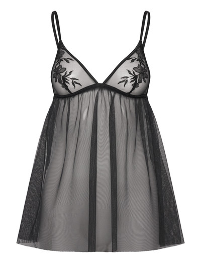 Zarte Blumenstickereien zieren die Cups dieses bezaubernden Mesh-Babydolls. Die luftige Silhouette fällt wunderschön und sorgt für ein angenehmes und romantisches Gefühl. Kombinieren Sie es mit dem passenden Tanga für einen kompletten Look.