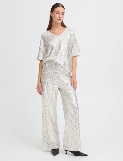 Diese Hose mit weitem Bein schimmert mit einer subtilen Textur und bietet eine entspannte Silhouette. Das fließende Design sorgt für Komfort und mühelosen Stil und macht sie zu einer vielseitigen Ergänzung für jede Garderobe.