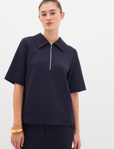 Dieses kurzärmelige Oberteil zeichnet sich durch eine moderne Silhouette und einen eleganten Reißverschluss am Ausschnitt aus. Es ist die perfekte Ergänzung für jede Garderobe und bietet eine Mischung aus Komfort und Stil.