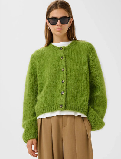 Dieser Strickcardigan mit kastenförmigem Schnitt bietet eine entspannte und bequeme Passform. Die langen Ärmel spenden zusätzliche Wärme und machen ihn zu einem vielseitigen Kleidungsstück für jede Garderobe.