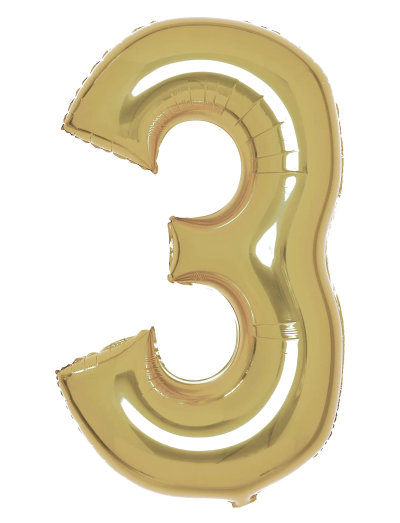 3+ JahreNumber foil balloon in white gold, height approx. 86 cm when filled. Can be inflated with helium to float, or alternatively with air using a balloon pump and hung with string or line. Equipped with hanging loops at both the top and bottom for easy attachment. When filled with helium, it stays afloat for about one week.