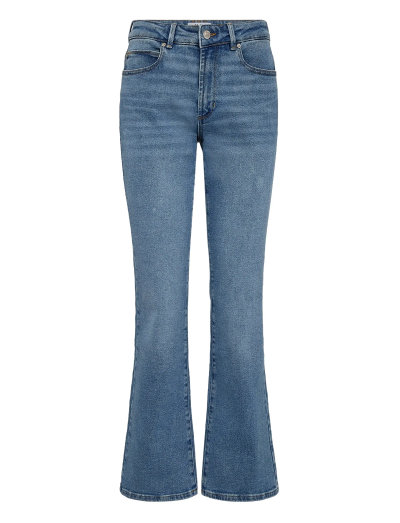 Diese Jeans mit einem schmeichelhaften Schlag sind eine vielseitige Ergänzung für jede Garderobe. Sie sind mit einer schmalen Passform am Oberschenkel und einer mittelhohen Taille geschnitten und bieten eine ausgewogene Silhouette. Die softe, mittelblaue Waschung und der klassische Five-Pocket-Style machen sie einfach zu kombinieren mit verschiedenen Oberteilen.