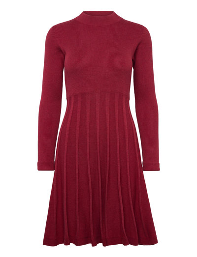 Dieses Strickkleid aus reiner Baumwolle bietet eine bequeme und schmeichelhafte Passform. Es verfügt über ein Rippstrickoberteil, lange Ärmel und einen klassischen Rundhalsausschnitt. Der Faltenrock verleiht einen Hauch von Eleganz und erzeugt eine schöne, fließende Silhouette.
