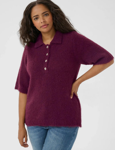 Dieser Strickpullover mit Polokragen und Knopfleiste bietet einen raffinierten und dennoch entspannten Look. Die normale Passform und die halben Ärmel machen ihn zu einer vielseitigen Ergänzung Ihrer Garderobe.