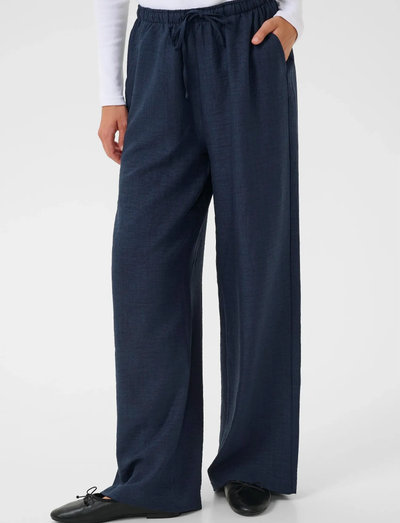 Diese langen Hosen bieten eine entspannte Silhouette mit einem bequemen elastischen Bund und einem schmeichelhaften, weiten Bein. Sie sind eine vielseitige Ergänzung für jede Garderobe und lassen sich mühelos mit verschiedenen Oberteilen zu einem lässigen und dennoch stilvollen Look kombinieren.