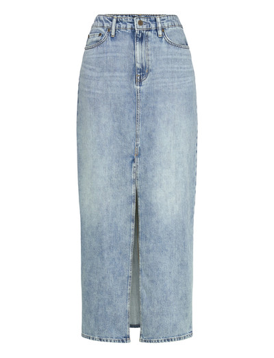 Dieser Rock aus steifem Denim bietet eine strukturierte Silhouette. Das Design verfügt über einen Schlitz vorne, der die Bewegungsfreiheit verbessert und diesem klassischen Kleidungsstück einen Hauch von modernem Stil verleiht.