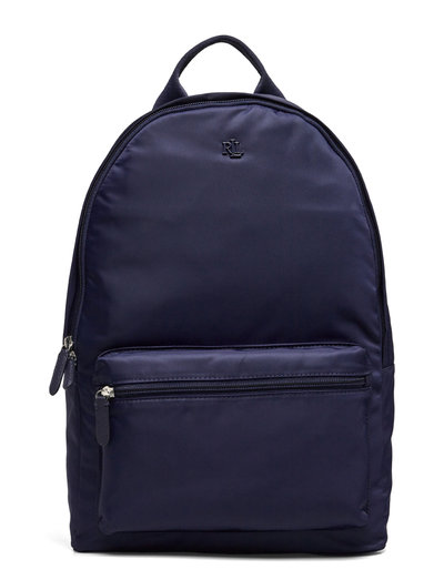 Crafted with a durable nylon shell, the medium Stevie backpack features a spacious body and multiple pockets for storing your day-to-day essentials. “Lauren Ralph Lauren” webbed straps and a tonal “LRL” logo at the front add signature style.Top handle with a 3.25" drop. Two adjustable “Lauren Ralph Lauren” webbed shoulder straps, each with a 35" maximum length.Zip closure. Coated “LRL” metal logo at the front.Exterior zip pocket. Zip pocket and one slip pocket at the interior. Back zip compartment.