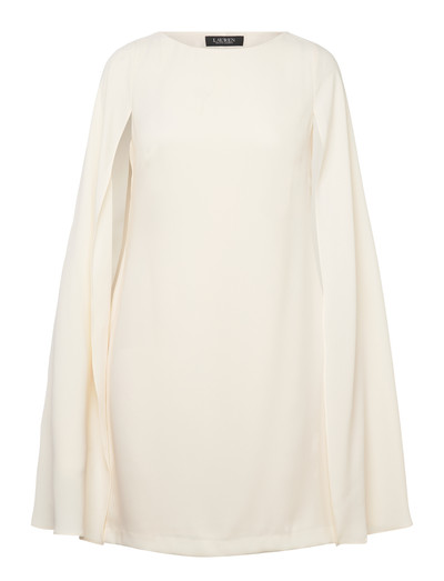 Dieses Cocktailkleid aus modernem Georgette ist eine stilvolle Wahl für besondere Anlässe. Der Wasserfall-Umhang verleiht der figurbetonten Silhouette eine fließende Bewegung und ist so konzipiert, dass er bis zum Knie reicht. Es verfügt über einen abgerundeten Ausschnitt und einen verdeckten Reißverschluss an der linken Seitennaht mit Haken- und Ösenverschluss.