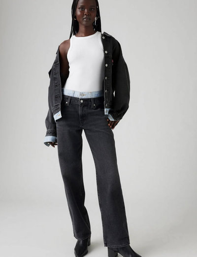 Diese Jeans haben eine Baggy-Passform und einen kontrastierenden Bund. Sie sind aus einem bequemen und strapazierfähigen Denim-Gewebe gefertigt. Die Jeans haben einen lässigen und stilvollen Look, perfekt für den Alltag.