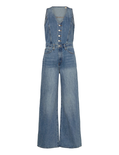 Dieser Jumpsuit aus Denim verfügt über eine Knopfleiste vorne und weite Beine für eine stilvolle, retro-inspirierte Silhouette. Das ärmellose Design macht ihn ideal zum Layern oder zum Tragen an wärmeren Tagen.