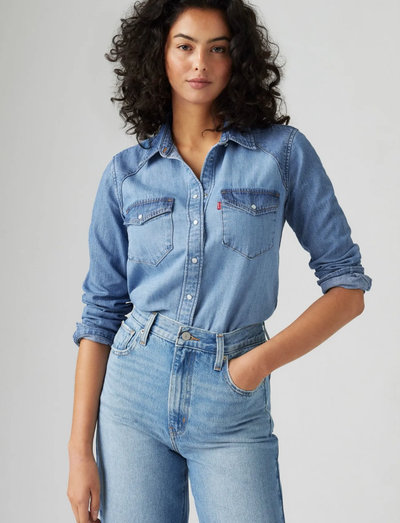 Dieses Jeanshemd ist ein Kleiderschrank-Grundstück. Es hat ein klassisches Design mit langen Ärmeln und Knopfleiste vorne. Das Hemd hat Brusttaschen und eine bequeme Passform. Dieses Hemd ist perfekt für jeden Anlass.