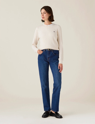 Klassische Zopfstrickdetails werten diesen Pullover auf. Er ist aus weicher Bio-Baumwolle gefertigt und bietet eine bequeme und stilvolle Option für mehrere Lagen. Das zeitlose Design macht ihn zu einer vielseitigen Ergänzung für jede Garderobe.