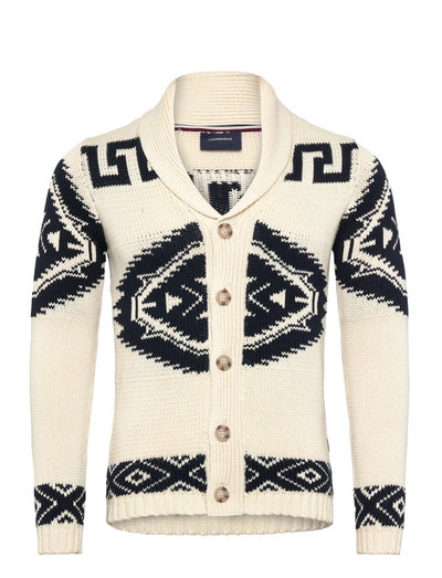 Diese Strickjacke besticht durch ein markantes Intarsienmuster und bietet einen raffinierten Look mit einem Hauch von optischem Interesse. Der Schalkragen sorgt für zusätzliche Wärme und Eleganz und macht sie zu einem vielseitigen Kleidungsstück für den Lagenlook.