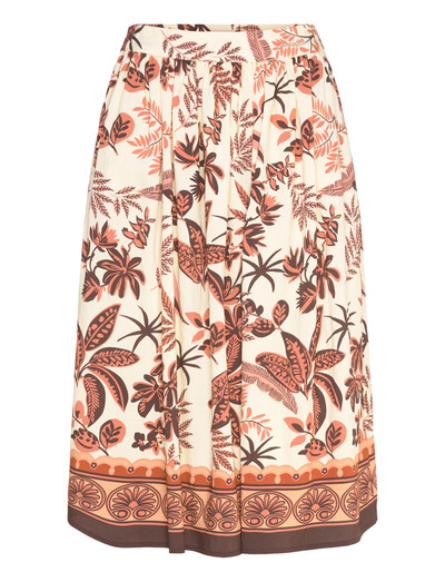 Dieser Midirock mit einem künstlerischen Allover-Print bietet eine leichte und weiche Qualität mit einem schönen Fall. Der elastische Rücken sorgt für eine bequeme Passform, während das elegante Volumen einen Hauch von Raffinesse verleiht. Style ihn mit einem einfachen T-Shirt für einen charmanten Look.