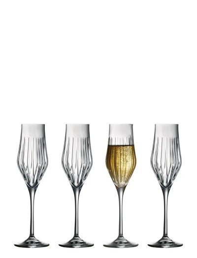 Champagne glass, 23 cl. It sounds just right when you toast. It feels good in your hand. And it looks stunning when light catches the glass’s vertical facets. The crystal glass has an elegant finish and impressive clarity, letting both bubbles and atmosphere unfold. Beautiful and durable – perfect for grand celebrations and everyday little moments.