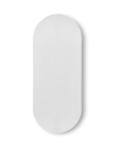 Inspiring serving platters and decorative wall objects. With the oval platters in the Tura series, Lyngby Porcelæn continues its graphic design language, inspired by patterns in sand and stone from distant places – a captivating balance between structure and softness that invites you to rethink form and function. The Lyngby design is now firmly established as a success in the Lyngby Porcelæn collection – every piece defined by timeless lines and the uncompromising expression that characterises Lyngby Porcelæn’s minimalist and elegant look, giving the Lyngby series its unique soul. The two oval porcelain platters are both a natural extension of the Lyngby Tura series and a completely independent design statement in your home. Developed by designer Philip Bro Ludvigsen, they feature the same crisp, rhythmic grooves that define the rest of the Tura family. But unlike the distinctive, highly sculpted vases with their intricate forms and voluminous silhouettes you already know from Tura, the interpretation here unfolds in the surface. You can enjoy the same repetitive grooves, but now the series is expanded with new explorations of form. As always, beautifully stylish – yet also an eye-opener to new ways of using porcelain. The form and repetitive grooves of the platters are this time a direct reference to Philip Bro Ludvigsen’s personal encounters with patterns in nature and culture: from childhood days on Tura Beach in Australia, where he spent much time playing with sand and drawing flat patterns on endless beaches, to the fine, flat, almost meditative stone patterns of Japanese Zen gardens he experienced as a young traveller. All these impressions of sand and stone from distant places have been a great inspiration for the Tura platters. The result is a design language that balances structure and softness – between stringency and poetry. This large platter measures 48x20 cm and, like the slightly smaller platter in the series, is perfect for serving fresh fruit or sushi and can also be used as a base for a tableau of tealight holders or to display your finest finds. And both Tura platters have the unique feature of being able to be hung on the wall as decorative objects, where you can enjoy the play of light with the grooves – creating the most beautiful shadow effects and almost magical graphic depth. With their glossy glaze and white porcelain, they stand – or hang – simply and sculpturally. Alone or together, they add a truly inspiring dimension to Lyngby Porcelæn’s iconic lines. And, of course, both platters come with the iconic logo on the bottom, assuring you that you are holding a genuine design classic from Lyngby Porcelæn.
