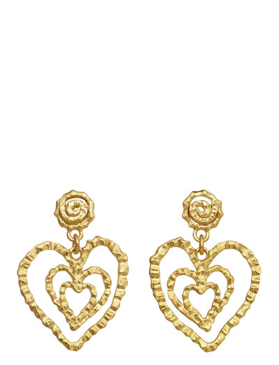 Mit einem Trio aus verschachtelten Herzen bieten diese Ohrringe ein fesselndes, strukturiertes Design. Die offenen Herzformen baumeln anmutig von einem spiralförmigen Stift und schaffen so ein verspieltes und doch elegantes Statement.