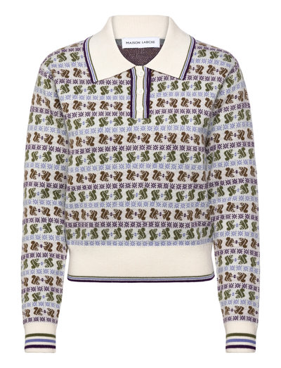 Dieser Pullover mit verspieltem Eichhörnchen-Jacquard bietet mit seiner Knopfleiste und dem großen Kragen eine bequeme Passform. Gerippte Abschlüsse an den Handgelenken und am Saum verleihen diesem charmanten Stück eine elegante Note.