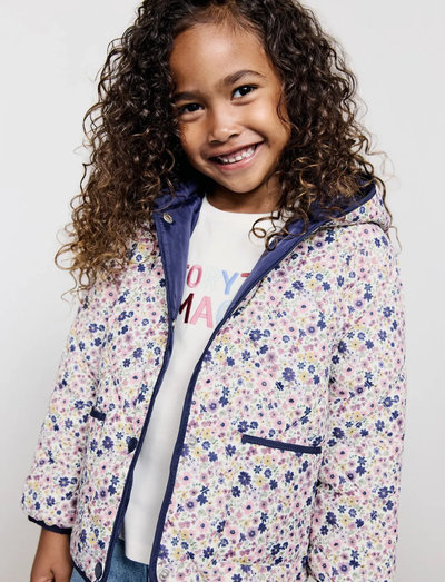 Dieser gesteppte Anorak mit charmantem Blumendruck bietet sowohl Stil als auch Funktionalität. Das wasserdichte Material schützt vor den Elementen, während die Kapuze zusätzlichen Schutz bietet. Er verfügt über ein gerades Design, lange Ärmel, zwei Vordertaschen und einen Knopfverschluss.