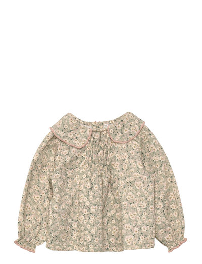 Diese charmante Bluse aus reiner Baumwolle besticht durch ein entzückendes Blumenmuster. Das Design verfügt über einen Bubikragen und Raffungen für einen Hauch von Eleganz. Lange Ärmel mit gerippten Abschlüssen und ein Knopfverschluss auf der Rückseite vervollständigen dieses bequeme und stilvolle Kleidungsstück.