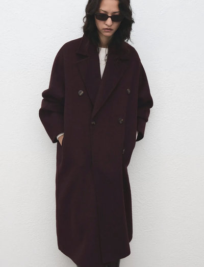 Handmade, Inner lining, Wool mix fabric, Long design, Oversize design, Lapel-collar V-neck collar, Lapel with notch, Long sleeves, Two side pockets, Double button fastening