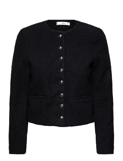 Mit dieser Boucléjacke, die jedem Outfit einen Hauch von Struktur verleiht, können Sie Ihre Outerwear-Kollektion aufwerten. Das gerade Design und der Rundhalsausschnitt bieten eine klassische Silhouette, während die langen Ärmel zusätzliche Wärme spenden. Sie verfügt über zwei seitliche Paspeltaschen und einen Knopfverschluss vorne, der mit auffälligen Knöpfen in Schmucksteinoptik verziert ist. Komplett mit Innenfutter für Komfort.