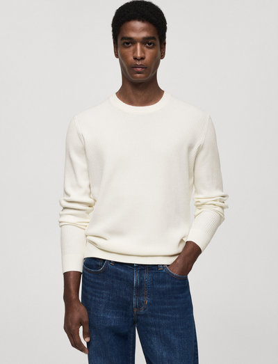 Dieser gerippte, gestrickte Baumwollpullover ist eine stilvolle und bequeme Wahl für jeden Anlass. Er verfügt über einen klassischen Rundhalsausschnitt und lange Ärmel, was ihn perfekt zum Schichten oder zum Tragen allein macht. Die gerippte Strickware verleiht Textur und Dimension, while der Baumwollstoff weich und atmungsaktiv ist.