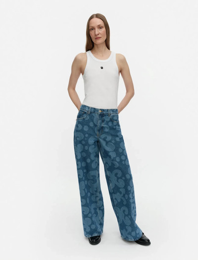 WeitDiese Jeans mit fünf Taschen ist aus unelastischem Baumwolldenim gefertigt und verfügt über ein markantes Allover-Muster. Das Design zeichnet sich durch eine leicht tiefere Taille und einen tieferen Schritt aus, was eine entspannte Passform in den weiten, langen Beinen ergibt. Abgerundet wird das Design durch Jeansknöpfe und ein Jacron-Label aus FSC-zertifiziertem Material auf der Rückseite.
