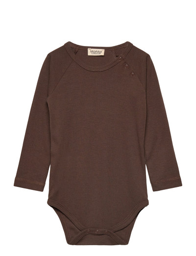 Plain long-sleeved bodysuit with raglan sleeves, with snap buttons in front of the left shoulder and at the crotch for easy changing.