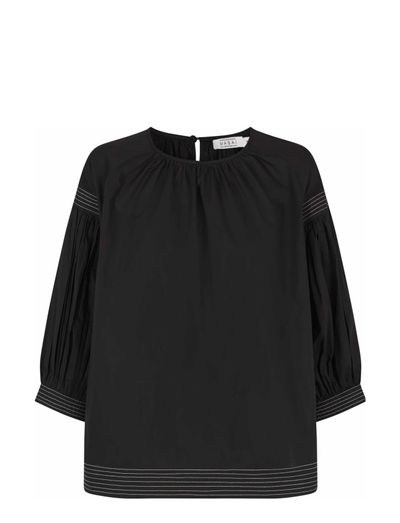 Raffungen am Ausschnitt und an den Ärmelbündchen verleihen dieser langärmeligen Bluse einen Hauch von Eleganz. Der lockere Schnitt macht sie ideal zum Layern oder zum Solotragen, während die dezenten horizontalen Steppdetails am Saum für ein raffiniertes Finish sorgen.