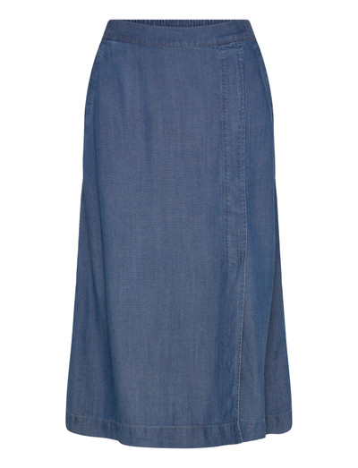 Dieser Rock in klassischer Denim-Waschung besticht durch seine schmeichelhafte Midi-Länge. Ein elastischer Bund sorgt für einen bequemen Sitz, während die Wickeloptik einen Hauch von Raffinesse verleiht.