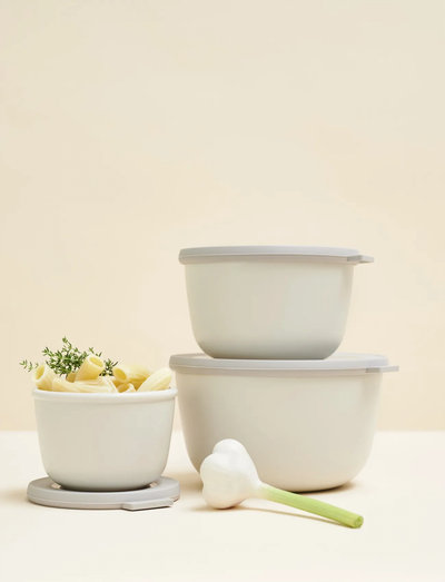 Mepal Cirqula food storage and serving bowl - large and practical in cool, Nordic tones. The bowl is also decorative and ideal for serving purposes. Set of 500 ml, 1000 ml and 2000 ml bowls.