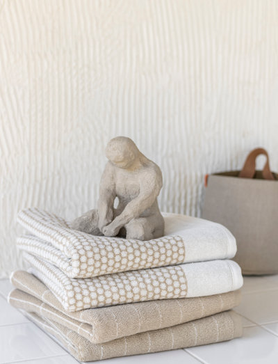 GRID has a graphic and stylish design. The design has a retro look that compliments simplistic, nordic bathrooms. Mix and match with the rest of the GRID series, as well as the TILE STONE series, to create a dynamic feeling that comes from a mix of graphic patterns. The towels are made from OEKO-TEX® 100-certified cotton, giving the towels a softness that lasts wash after wash.
