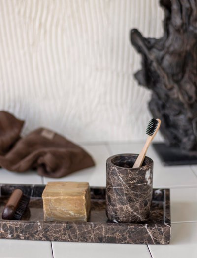 The toothbrush holder is available in two beautiful color variants and can also be combined with the other products of the MARBLE series - DISPENSER, TOILET BRUSH HOLDER, TRAY and CANDLE HOLDERS.