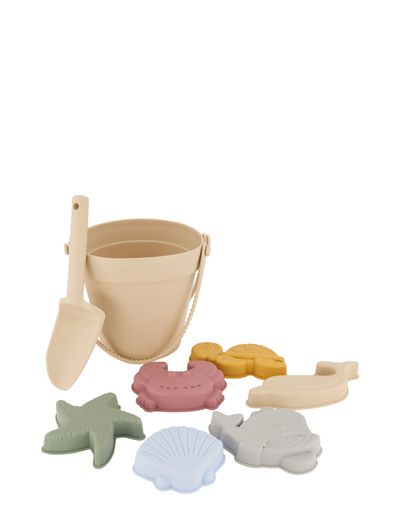 Head to the beach or sandbox for lots of fun in the sand with this silicone beach set from mikk-line. The set is 100% child-friendly and without harmful chemicals, as it is made from soft non-toxic silicone. Use the bucket, shovel and moulds to build sandcastles and have fun with water. This set is highly durable and will last for years. All of the tools are soft to use and easy to clean.