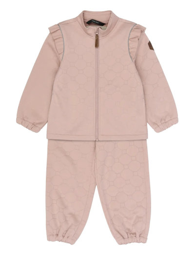 ReflektordetailsSoft Thermal Set Warm Frill from Mikk-Line is a cozy two-piece designed to keep girls comfortable in cooler weather. The quilted thermo fabric in 100% polyester delivers dependable warmth without feeling heavy, and the breathable design helps regulate temperature during active play. The jacket features a full-length zipper, a neat stand collar, and charming frill details at the shoulders, while the curved back hem offers a touch of extra coverage. Elasticated cuffs and hem help seal in warmth and ensure a snug, comfortable fit. The matching pants have an elastic waistband and cuffed hems for easy dressing and secure wear throughout the day.- Quilted insulation provides warmth without bulk- Full-length front zipper for quick, easy dressing- Elastic cuffs and hems for a secure, comfy fit