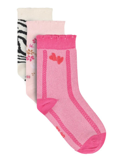 3-pack socks from Minymo. The pack includes three pairs of socks, each with a print – two pairs with an all-over print and one pair with a smaller print. All pairs feature a wavy edge detail at the opening. Certified acc. to OEKO-TEX® STANDARD 100 Cert. No. 2276-364 DTI
