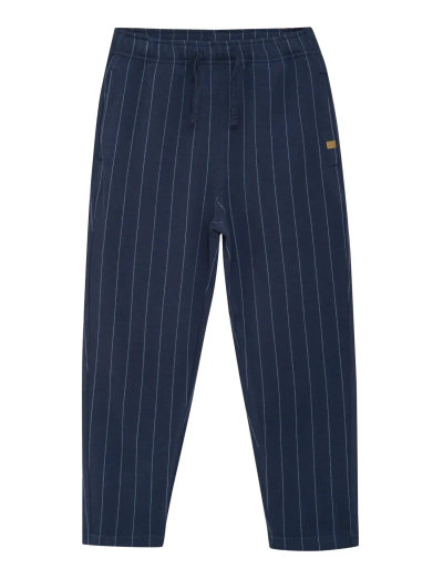 Striped pants in woven fabric with an adjustable drawstring waistband, practical side pockets, and one back pocket.