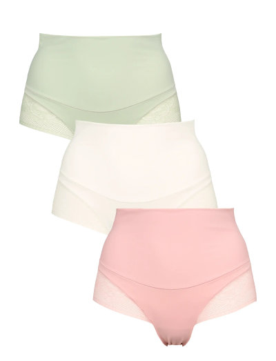 Genießen Sie eine glatte Silhouette mit diesem Dreierpack hoch geschnittener Tai-Slips. Das nahtlose Design sorgt für eine bequeme Passform, die unter der Kleidung nicht aufträgt, während die leichte Formgebung sanften Halt bietet. Zarte Spitzendetails verleihen einen Hauch von Eleganz.